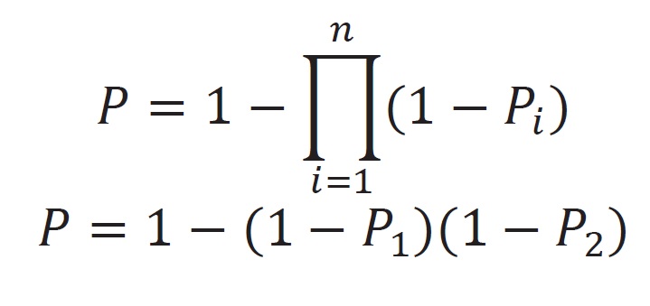 For events connected by an AND gate, the overall probability is calculated using the multiply function from individual probabilities.