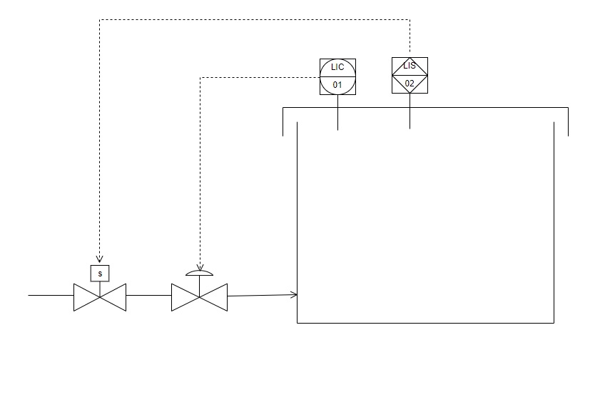 The concept of BPCS and SIS is presented below. The ATM storage tank controls the liquid level incoming flow by using the level control loop (LIC-01) and in case of high- liquid level than the design set point, the high liquid level switch will isolate the inflow liquid via LIS-02 by closing the shut-off valve.