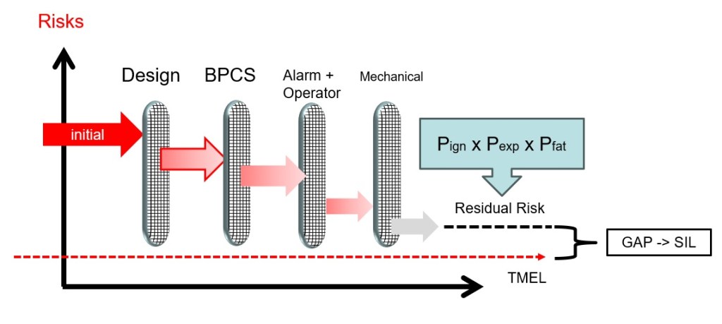 และ SIL-b มีความหมายว่า gap ของความเสี่ยงนั้นมีความสูงมากๆ ไม่สามารถจัดการได้ด้วยระบบ Safety Instrumented System (SIS) เพียงระบบเดียว จำเป็นต้องมีระบบอื่นเข้ามาช่วย เช่น ระบบเครื่องกล Mechanical Device เช่น PSV เป็นต้น