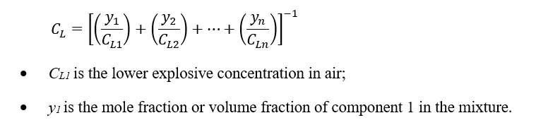 The lower explosive limits of mixtures can be calculated using Le Chatelier’s rule as follows.