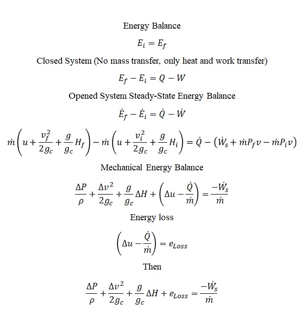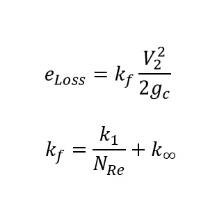 The energy loss is represented by the friction loss occurs during transferring by using the below equation. The kf is the excess head loss from pipe, fitting, and other which are dimension less and can be determined by 2K methods.