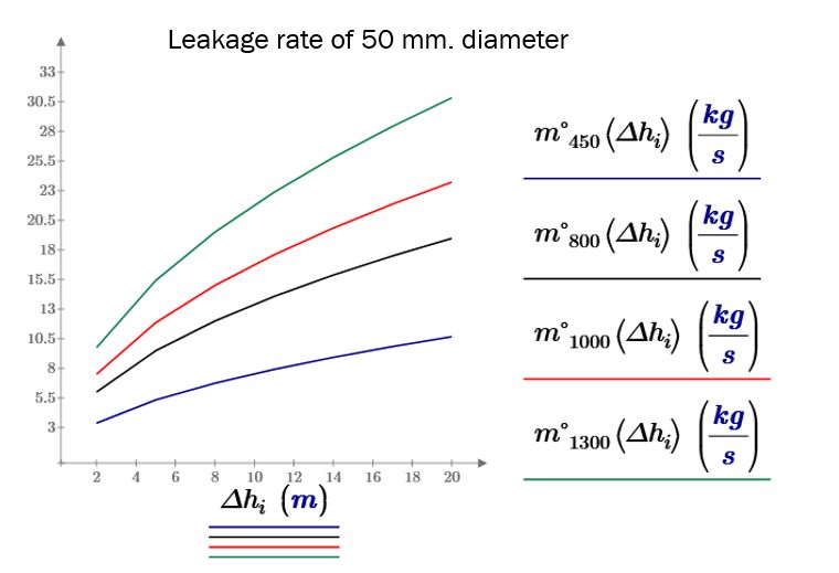 Below are the leakage rates from 10, 25, 50, and 100 mm diameters from the ATM storage tank which contains the hydrocarbon liquid density are 450, 800, 1000, and 1300 kg/m3 respectively.