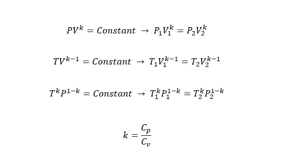 - For an ideal gas undergoing an isentropic process, the relationship between pressure (P) and Volume (V) can be described as following;