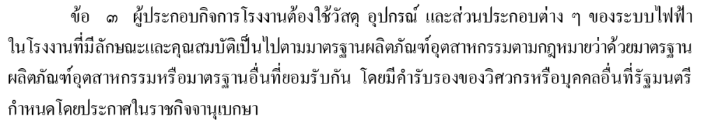 กฏหมายของไทยที่เกี่ยวข้อง เช่น กฏกระทรวง กำหนดมาตรการความปลอดภัยเกี่ยวกับไฟฟ้าในโรงงาน พ.ศ.2550