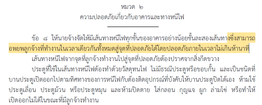 - ทางหนีไฟยาวเกิน / แคบเกิน เส้นทางหนีภัยไม่เพียงพอ
