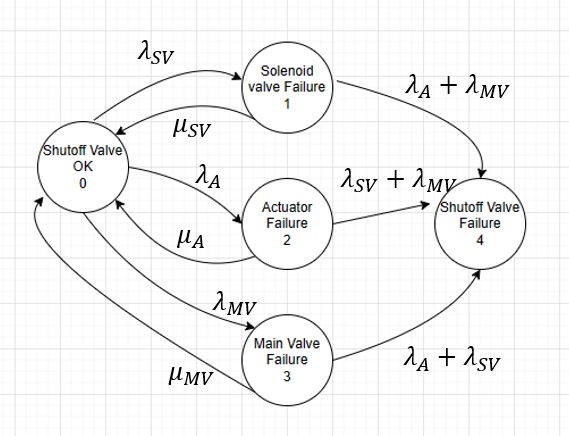 The other example is the markov modelling of shutoff valve which typically will compose 3 mains components, main valve, actuator, and solenoid valve.
