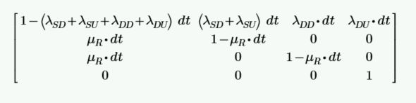 λ) และอัตราการซ่อมบำรุง หรือ Restore Rate (μ) เพื่อหาค่าความน่าจะเป็นในการที่ระบบจะย้ายจากสถานะหนึ่งไปยังอีกสถานะหนึ่ง