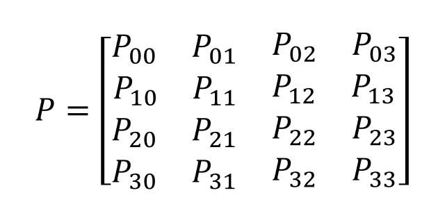 และสามารถนำข้อมูลนี้มาเขียน P-Matrix และมีค่าคำนวนต่างๆ ดังนี้