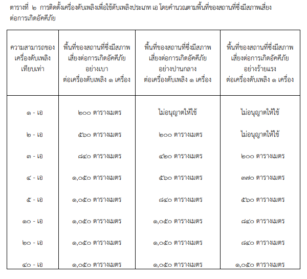 และกฏกระทรวง กำหนดมาตราฐานในการบริการ จัดการ และดำเนินด้านความปลอดภัย อาชีวอนามัย และสภาพแวดล้อมในการทำงานเกี่ยวกับการป้องกันและระงับอัคคีภัย พ.ศ.2555 ที่ใช้ข้อมูลความเสี่ยงต่อการเกิดอัคคีภัยมากำหนดขนาดพื้นที่ effective area ของเครื่องดับเพลิงที่ต้